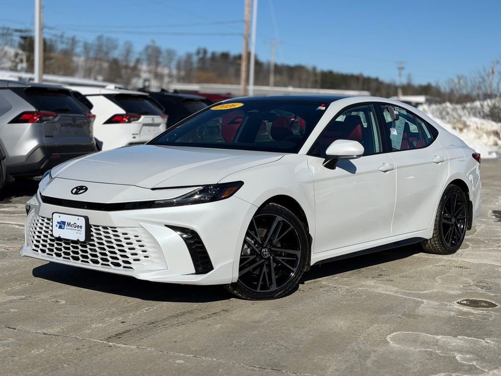 McGee Toyota of Claremont is proud to present you with another True Market Priced Pre-Owned Vehicle. This 2026 Toyota Camry XSE is loaded with the following Factory Options: Red Leather, ABS brakes, Active Cruise Control, Alloy wheels, Electronic Stability Control, Front dual zone A/C, Heated door mirrors, Heated Front Seats, Heated front seats, Illuminated entry, Leather Seat Trim, Low tire pressure warning, Navigation System, Remote keyless entry, and Traction control Red Leather, ABS brakes, Active Cruise Control, Alloy wheels, Electronic Stability Control, Front dual zone A/C, Heated door mirrors, Heated Front Seats, Heated front seats, Illuminated entry, Leather Seat Trim, Low tire pressure warning, Navigation System, Remote keyless entry, Traction control, 4-Wheel Disc Brakes, 6 Speakers, Air Conditioning, AM/FM radio: SiriusXM, Apple CarPlay/Android Auto, Auto High-beam Headlights, Auto-dimming Rear-View mirror, Automatic temperature control, Brake assist, Bumpers: body-color, Delay-off headlights, Driver door bin, Driver vanity mirror, Dual front impact airbags, Dual front side impact airbags, Emergency communication system: Safety Connect (5-year trial), Exterior Parking Camera Rear, Four wheel independent suspension, Front anti-roll bar, Front Bucket Seats, Front Center Armrest, Front reading lights, Fully automatic headlights, Garage door transmitter: HomeLink, Heated steering wheel, Knee airbag, Leather Shift Knob, Leather steering wheel, Navigation system: Drive Connect (1 year trial) includes Cloud Navigation with real time traffic and Google POI, Occupant sensing airbag, Outside temperature display, Overhead airbag, Overhead console, Panic alarm, Passenger door bin, Passenger vanity mirror, Power door mirrors, Power driver seat, Power passenger seat, Power steering, Power windows, Radio data system, Radio: 12.3" Toyota Multimedia Audio, Rear anti-roll bar, Rear reading lights, Rear seat center armrest, Rear window defroster, Security system, Speed control, Speed-sensing steering, Split folding rear seat, Spoiler, Steering wheel mounted audio controls, Telescoping steering wheel, Tilt steering wheel, Trip computer, Turn signal indicator mirrors, Variably intermittent wipers, and Wheels: 19" Smoked Gray and Black-Finished Alloy!!